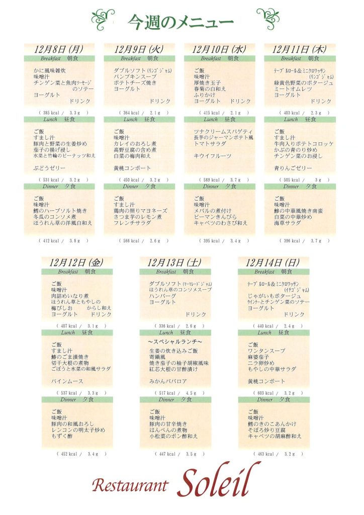 トップ > お食事メニュー(12/8~12/14) 2025.12.04 お食事メニュー お食事メニュー(12/8~12/14) 12月8日~12月14日のメニュー表です。 前の記事 お知らせ一覧に戻る 高級ホテルのような住まい ご利用料金 介護でお困りの方へ 資料請求 Copyright (C) 2017 ヴィラ・プランタン おかやま. All Rights Reserved.