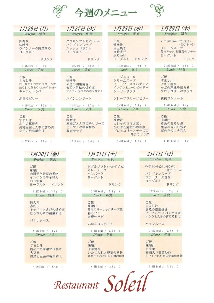 トップ > お食事メニュー(1/26~2/1) 2026.01.23 お食事メニュー お食事メニュー(1/26~2/1) 1月26日~2月1日のメニュー表です。 前の記事 お知らせ一覧に戻る 高級ホテルのような住まい ご利用料金 介護でお困りの方へ 資料請求 Copyright (C) 2017 ヴィラ・プランタン おかやま. All Rights Reserved.